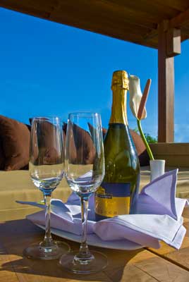 The holiday property encompasses 4 large en-suite bedrooms, positioned on 2 floors. The suites are fashioned in natural gradations of brown. The large outside living space in the second level looks over the paddy fields and from where you can enjoy the sounds and breezes of the sea.