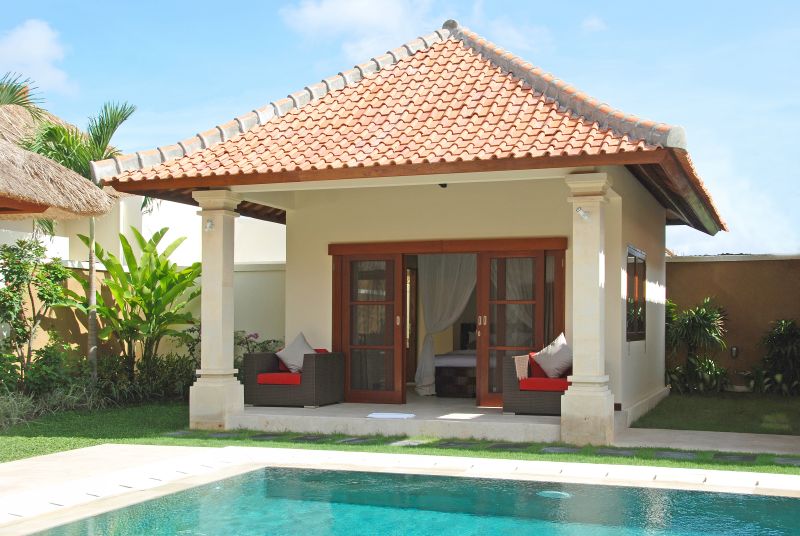 If you want to accommodate guests in separate areas the Villa has three double bedrooms situated in separate guest houses. These can comfortably accommodate two adult guests. These are fully air-conditioned with a pleasant Balinese tiled floor and dark timber furnished ambience.
